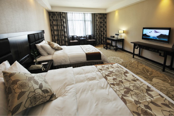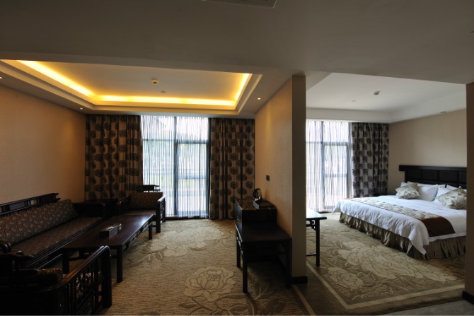 房內設施齊全,使用中央空調,37寸3D液晶電視,客房免費提供不計時國內長途電話,免費光纖網絡接入,紅木家具,保險箱、冰箱。酒店餐廳設有豪華餐飲包房11間。